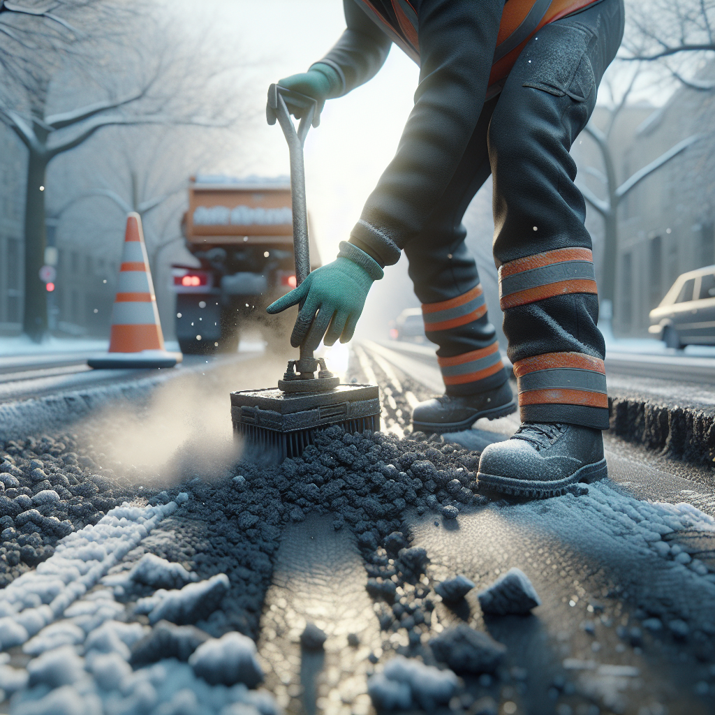 Szybka naprawa mrozowych i wysadzinowych uszkodzeń asfaltu z użyciem asfaltu na zimno (np. IRR)